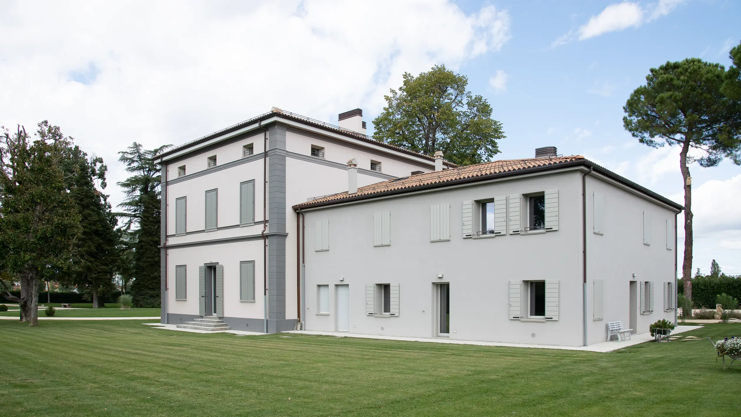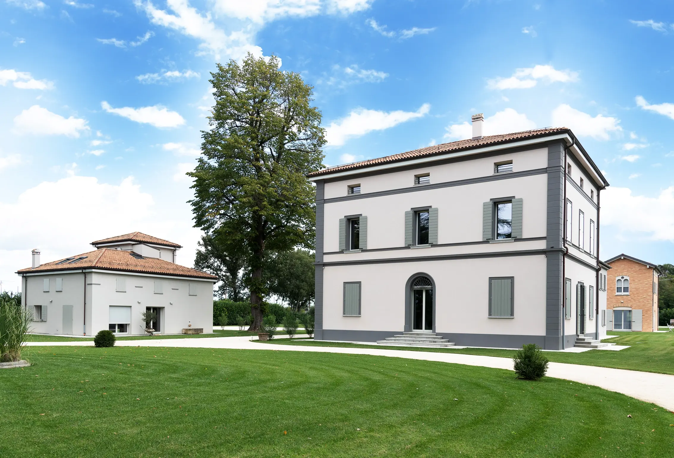 Per ciascun edificio del complesso Villa Ottani è stata proposta e scelta una soluzione ad hoc per ottenere il migliore risparmio energetico e comfort abitativo, senza dimenticare l’aspetto estetico: dall’utilizzo di un sistema a cappotto termico, interno o esterno, fino alle finiture per colorazioni RÖFIX. Un sistema a pompe di calore ed unità di ventilazione meccanica controllata consentono di ottenere riscaldamento, raffrescamento e produzione di acqua calda. Un campo da 50 kW di pannelli fotovoltaici, installati sulla struttura di copertura dell’area a parcheggio, consentono la produzione di energia elettrica rinnovabile.